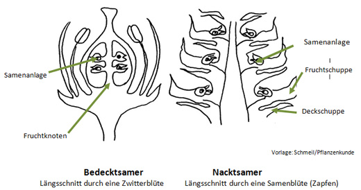 In der Kreidezeit vollzog sich ein bedeutender Wandel der Pflanzenentwicklung. Bis zum Alb, also vor etwa 100 Millionen Jahren, dominierten innerhalb der Samen- und Blütenpflanzen die Nacktsamer, auch Gymnospermen genannt. Es sind hochentwickelte Pflanzen, deren Samenanlagen frei auf den Fruchtblättern liegen; ihr gehören hauptsächlich Nadelhölzer, wie Koniferen, Gingko und Palmfarne an. Die ersten Bedecktsamer (Angiospermen) treten schon am Anfang der Kreidezeit im Berriasium auf, herrschen aber erst ab 100 Millionen Jahren. Bei dieser Planzengruppe sind die samentragenden Blätter zu einem geschlossenen hohlen Fruchtknoten verwachsen. Dort reifen sie zu Samen. Hatte bisher der Wind die Pollen auf die Samenanlagen übertragen, so übernehmen jetzt geflügelte Insekten diese Aufgabe – ab Tertiär auch Honigbienen.