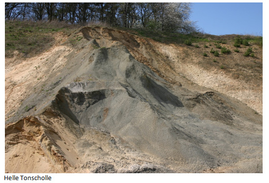 In der Sandgrube am Nordhang des Brelinger Berges bei Oegenbostel treten graue Tone mit Fossilien der Kreidezeit zutage. Die Kreiderippen wurden durch Gletscher vom Untergrund abgeschert und in Sand-Kies-Schichten eingeschuppt. Heute sind mehrere solcher Tonrippen noch zu sehen: sie sind von dunkelgrauer oder hellgrauer Farbe und bestehen aus schwankenden Anteilen von Ton und Tonmergelstein. Die Sedimente der Ober-Alb sollen dunkelgrau, die der Unter-und Mittel-Alb hell- bis mittelgrau sein. Mittel- bis blaugraue Tone und Tonmergelsteine stammen aus dem Apt. Das Material der Schuppen ist von zäher Konsistenz und zeigt beim Aufbrechen glänzende, gewellte Flächen.