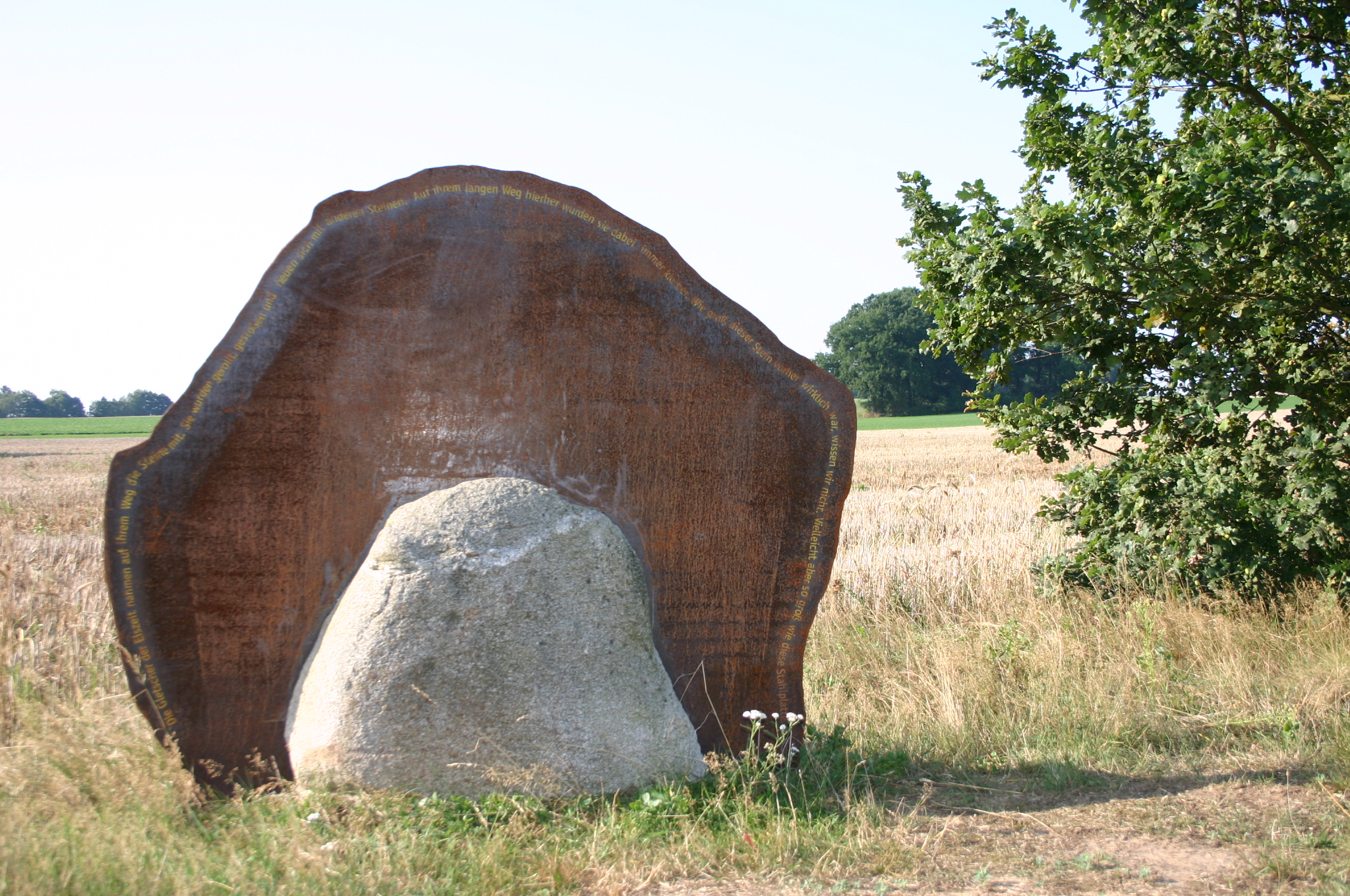 Verwendet man die glaziale Denudationsrate von 700 mm/1000 Jahren und unterstellt, dass er die Hälfte seiner Wanderung im Eis verbrachte, so müsste der Stein etwa 3,5 m dick gewesen sein; addieren wir noch einen Massenverlust durch Verwitterung von 1m/150000 Jahren hinzu plus seine heutige Größe von ca. 1m, so dürfte er 5,5 m groß gewesen sein. Nun, unser Stein war lange unterwegs und hat eine Menge erlebt.