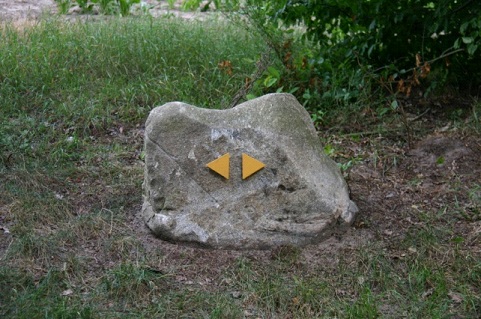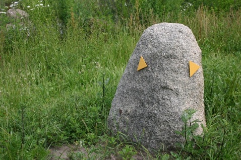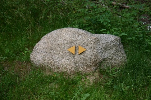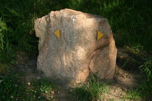 Biotitgranit: Wie der Name angibt, handelt es sich um einen Granit, der über Quarz und Feldspat hinaus auch ein Glimmermineral, nämlich den dunklen Biotit enthält. Wäre auch der zweite gesteinsbildende Glimmer, der helle Muskowit, ausgebildet, würde man von einem 2-Glimmer-Granit sprechen. Weitere Biotit-Granite dürften die Wegweisersteine Nr. 3, 11 und 13 sein.