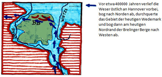 Von der späten Elster-Eiszeit bis zur frühen Saale-Eiszeit ist die Wedemark- Geest trockenes Hochgebiet gewesen. Sie wird von den Flüssen der Leine im Westen, der Wietze im Osten und der Aller im Norden begrenzt.